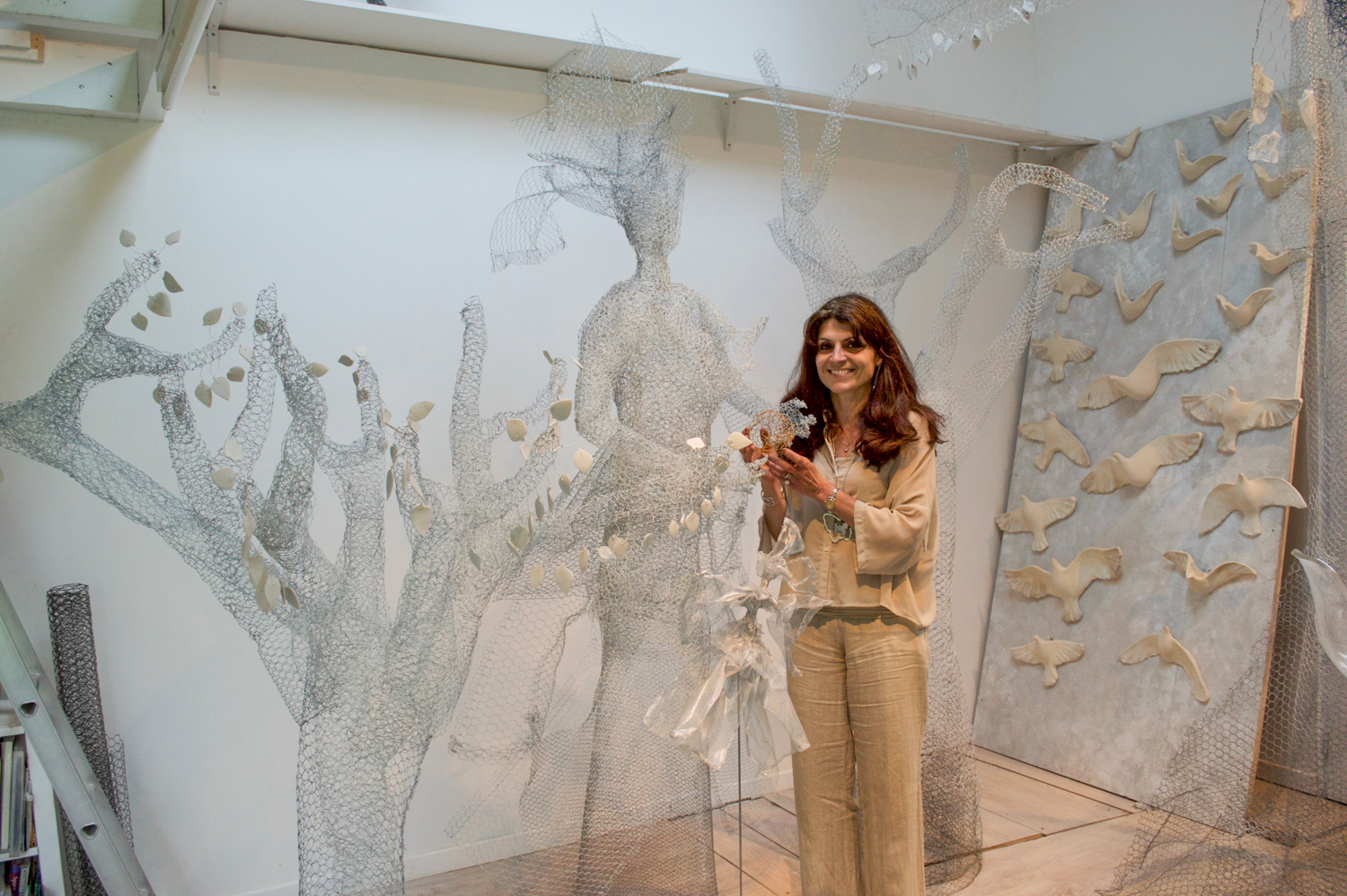Depuis, elle se consacre à la sculpture avec pour matériaux de prédilection, la céramique et le grillage. Son univers est féérique et onirique. Elle expose régulièrement son travail en France et à Singapour. Elle crée des scénographies poétiques pour des hôtels de Luxe en France, à Bombay (Inde) et de centres commerciaux hauts de gamme en Chine.